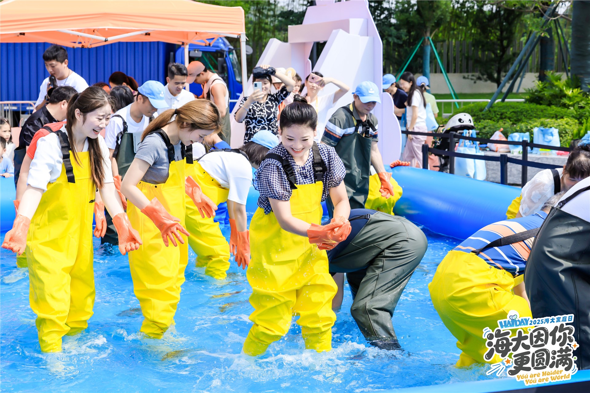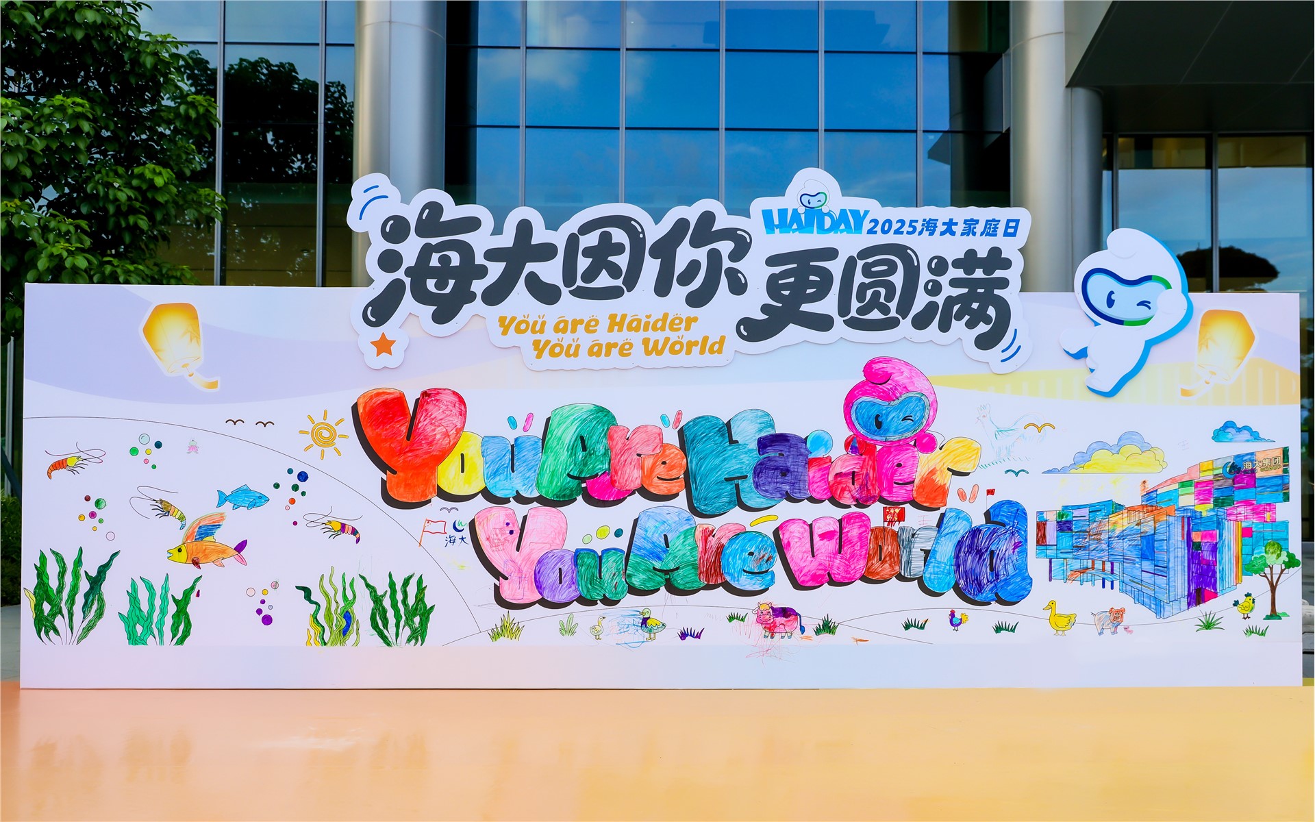 早早的签到区就排起了热闹的长龙。每一位“海大家人”都收到了一份沉甸甸的家庭日礼包,一日工牌、游玩地图、餐券、定制海大帽、致海大人的一封信,海大生鲜卡等,让这份欢迎礼格外贴心。一旁的创意拍照区,海大家人们在活动背景板前留下了一张张幸福合影,即拍即得的高速打印,让这份快乐立马就能捧在手心。